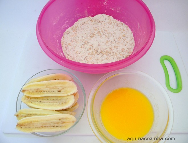 9- Pré-aqueça o forno a 210º C ou 220º C. Pincele um recipiente com um pouco de azeite o
